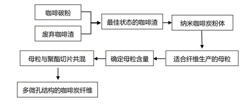 將適合紡絲并且具有特定功能的咖啡炭粉和廢棄的咖啡渣經(jīng)高溫煅燒,利用zui新納米技術(shù)對(duì)其進(jìn)行微粉化處理。為了保證zui終產(chǎn)品在后加工的可紡性,需要利用特殊的工藝將粉體加工成適合于纖維生產(chǎn)的咖啡炭母粒,并在此基礎(chǔ)上通過試驗(yàn)確定母粒的含量,zui后將這些母粒與聚酯切片共混生產(chǎn)出一種具有多微孔結(jié)構(gòu)的咖啡炭功能性滌綸,即咖啡炭纖維。