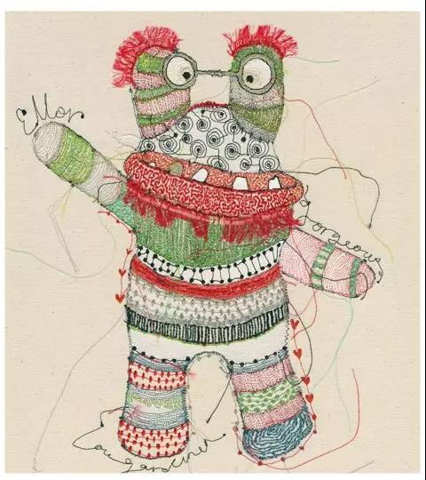 除了以動物為主題的刺繡外,Louise也創(chuàng)作了一系列人物作品。各個夸張的人物造型,因為歡快明亮的色彩搭配、以及貼近生活化的場景,讓人忍不住看了還想看,猶如瀏覽了一張張精美的藝術(shù)海報。