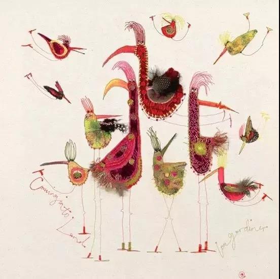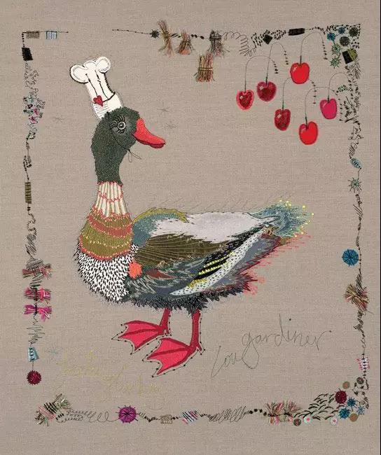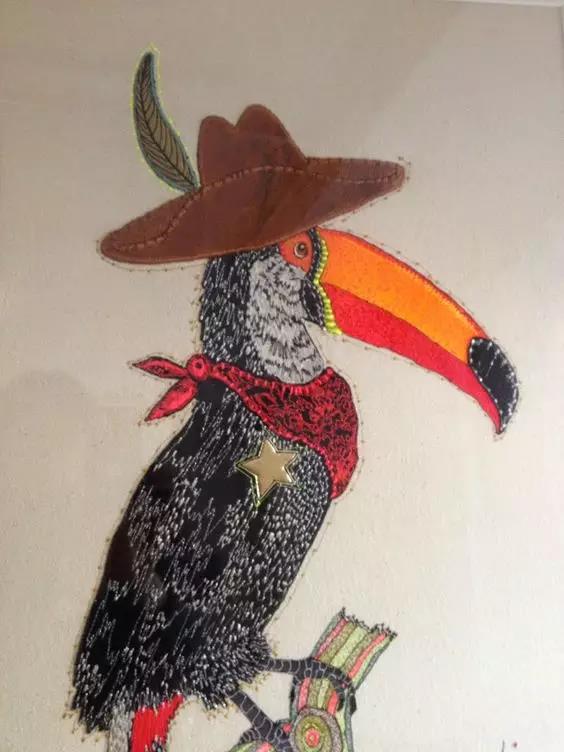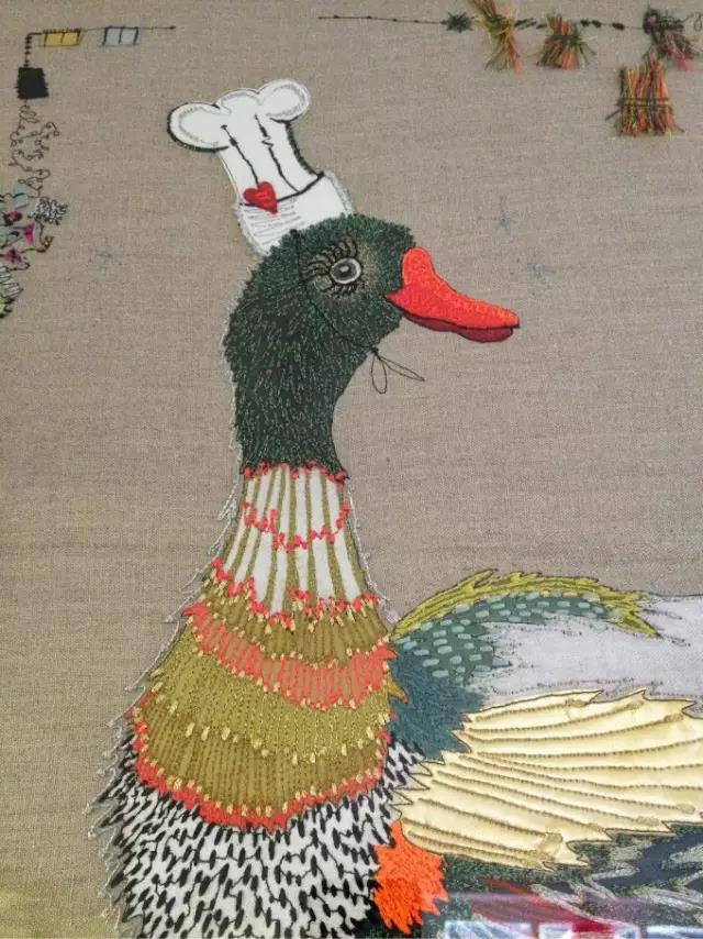刺繡對她而言,不是賴以生存的工具,而是一種表達的自我的方式或是媒介。在她的作品中,鳥、貓頭鷹、鴨子等等動物悉數(shù)到場,為它們穿上了一件件色彩艷麗的衣服,動作和表情更是惟妙惟肖。