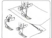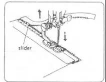 2、將拉鏈壓腳放下(放在拉鏈的底部),機針正好落在拉鏈基帶的折邊上