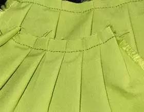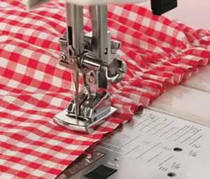 如果要上一層布料打褶,下一層不打褶,可以將上層布料放在打褶壓腳的叉子上,下層布料放在壓腳底下縫紉??p紉完成后你會發(fā)現,打褶的上層布料和不打褶的下層布料一次就縫在一起了。