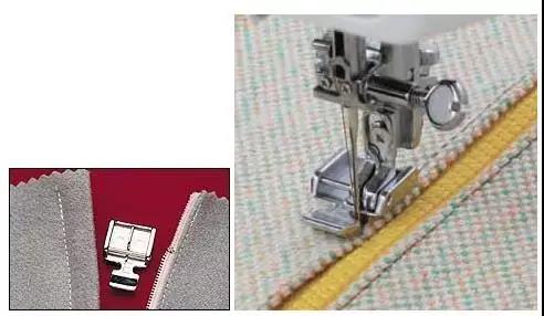 可以避開拉鏈齒,壓腳只壓在布料和拉鏈基帶上,縫紉布料和拉鏈基帶。