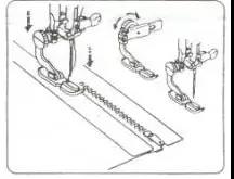 1、要縫拉鏈的左邊,將拉鏈壓腳裝在機針的左邊
