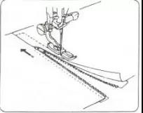 兩塊布料間隔4mm,在其之間縫紉,結束時按倒縫撥鈕倒縫數針??p紉結束后用熨斗將線跡壓平。熨時將兩塊布料向兩邊輕拉。