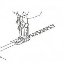 注意:縫直角部分時,縫邊可能會跑到折角部分的外面。此時,應慢速縫紉,使嵌條保持在壓腳槽中。