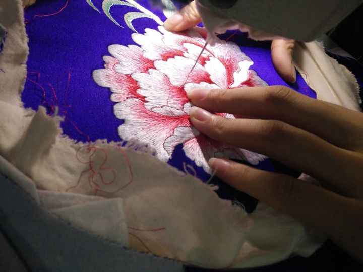 第五步:配色開(kāi)始繡花了。繡花的順序是zui外面開(kāi)始繡起,繡外邊邊緣決定整朵花的好壞呢,外邊緣要求疏密度合適,不宜過(guò)厚,線跡整齊的排在布面上即可。